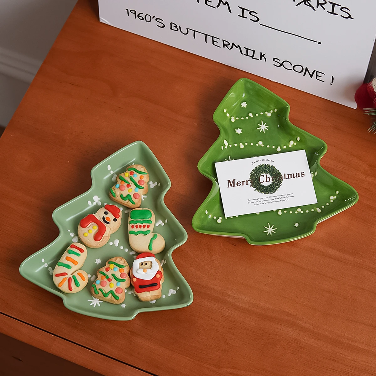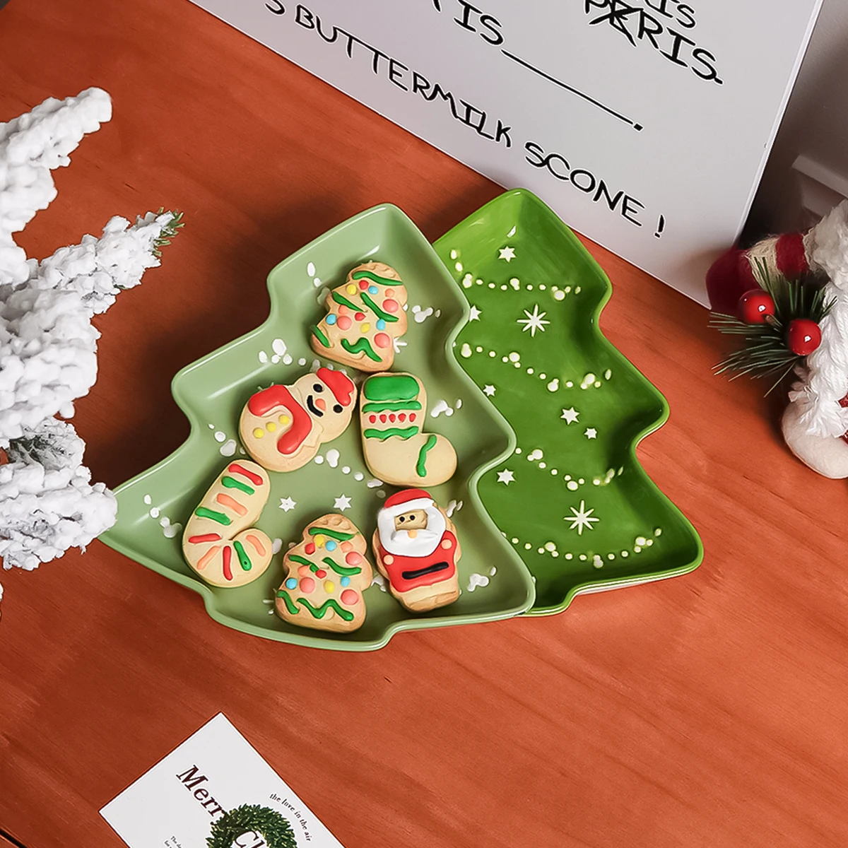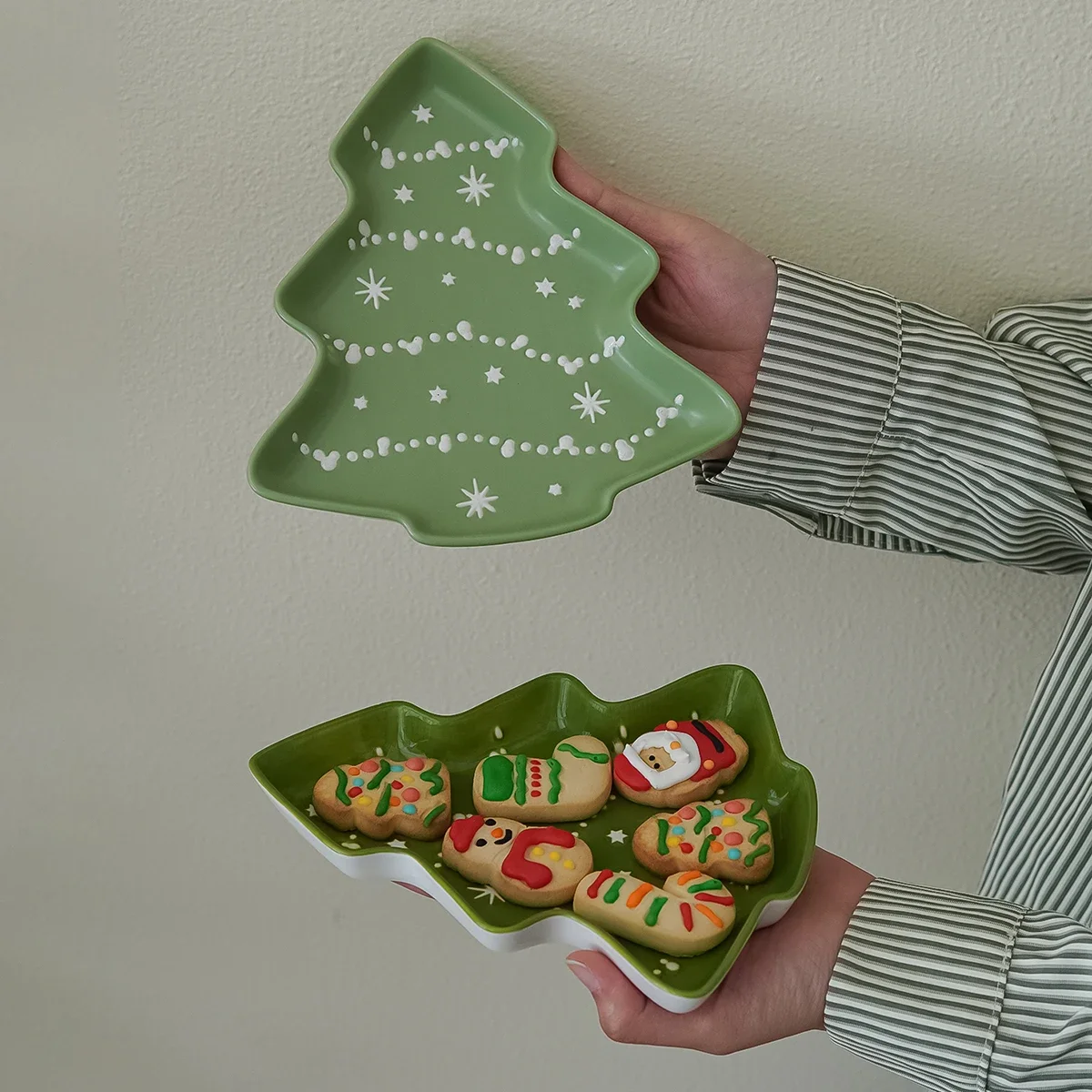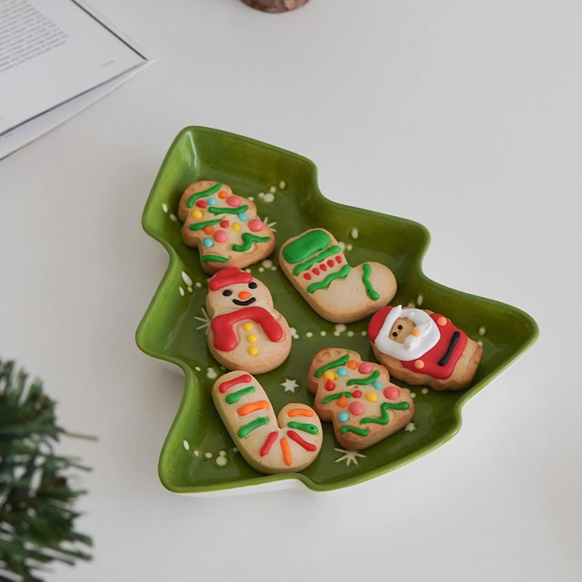 1/2Pcs Ceramic Christmas Tree Tray, Original Design Christmas Tree-Shaped Tray Dessert Plate