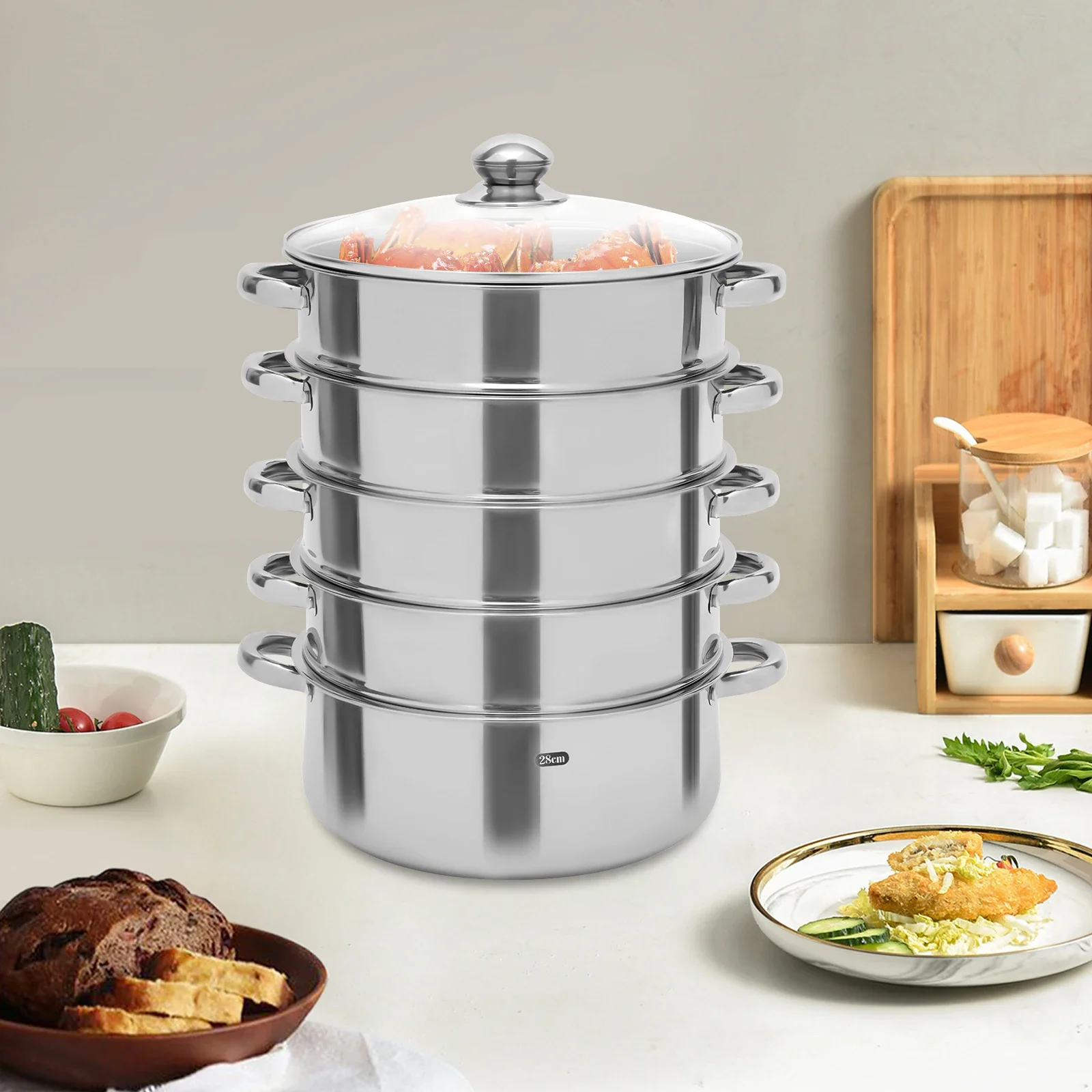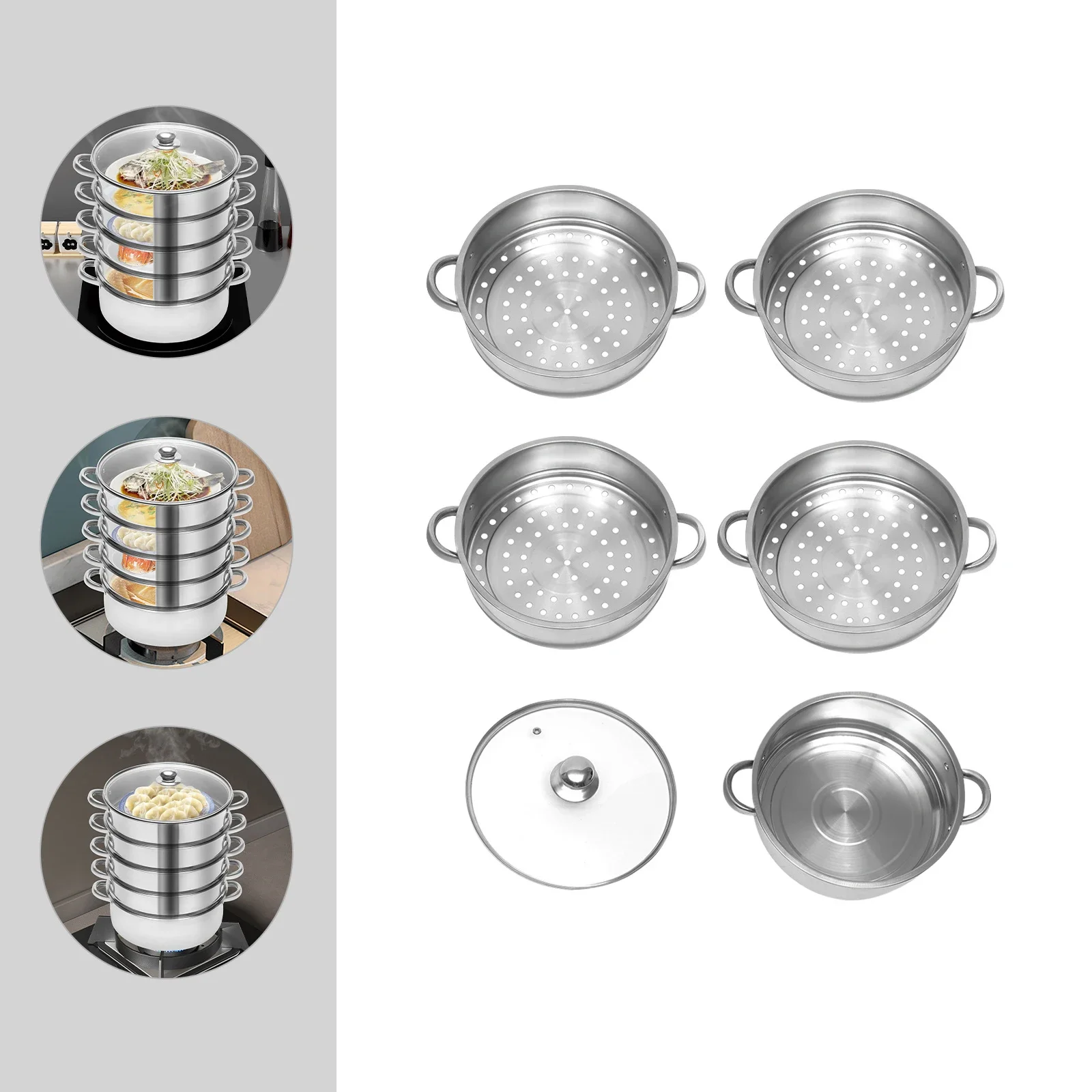 30cm 5-Tier Multifunctional Stainless Steel Steamer Kitchen Cooking Steamer Durable And Easy-to-clean
