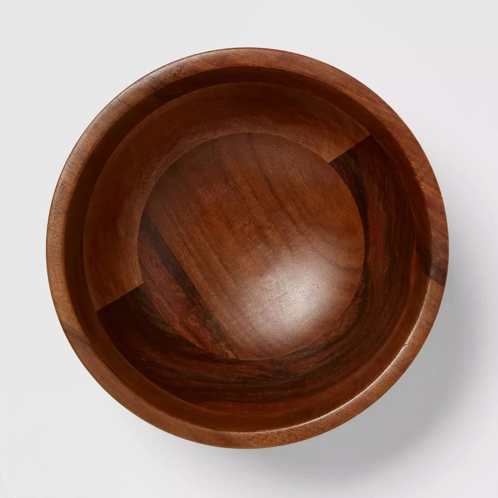 Elevate your serving style with this Wood Small Serving Bowl. This round serving bowl makes a convenient addition to your serveware collection. It features a brown wood grain finish to bring natural appeal to your dining table. This multipurpose bowl is ideal for serving fresh fruits, leafy salads and other snacks. Plus, it can be spot cleaned for easy care.