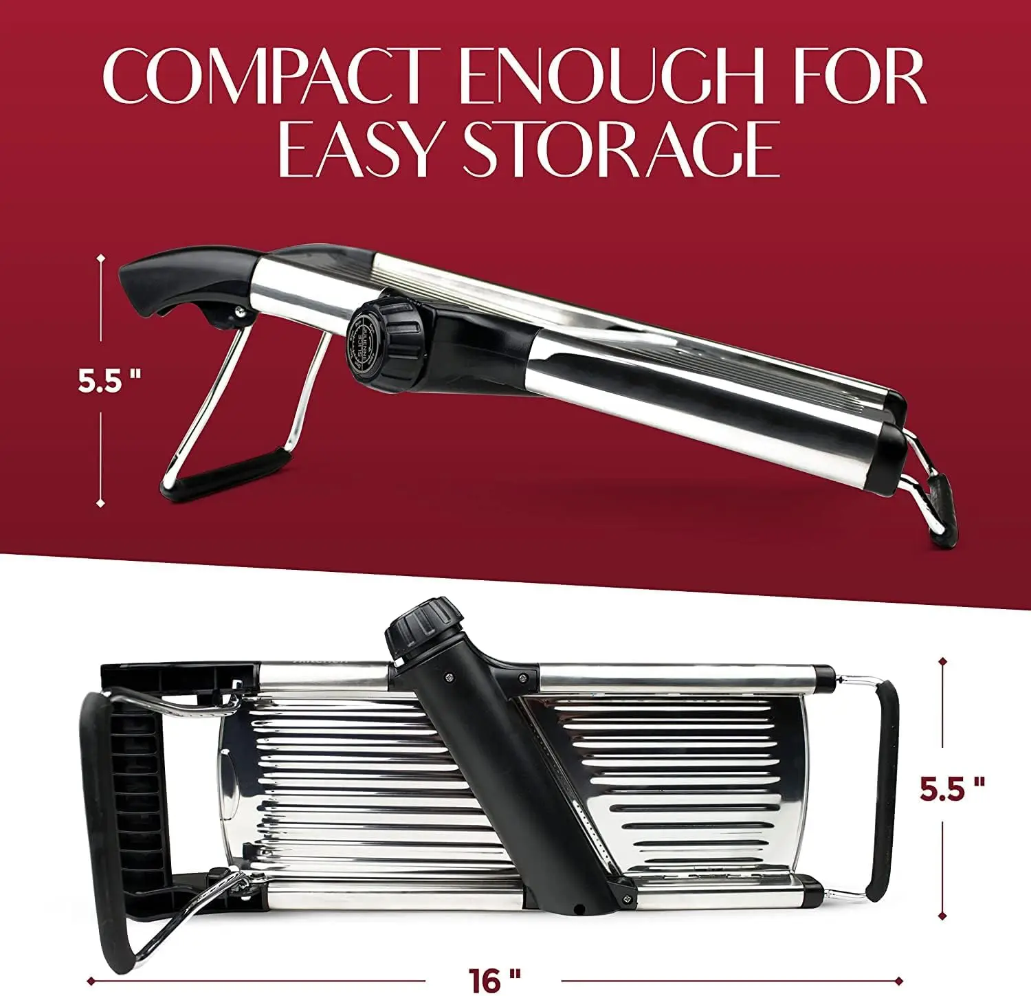 - Dishwasher Safe: The slicer is made of durable stainless steel and is dishwasher safe for easy cleaning.