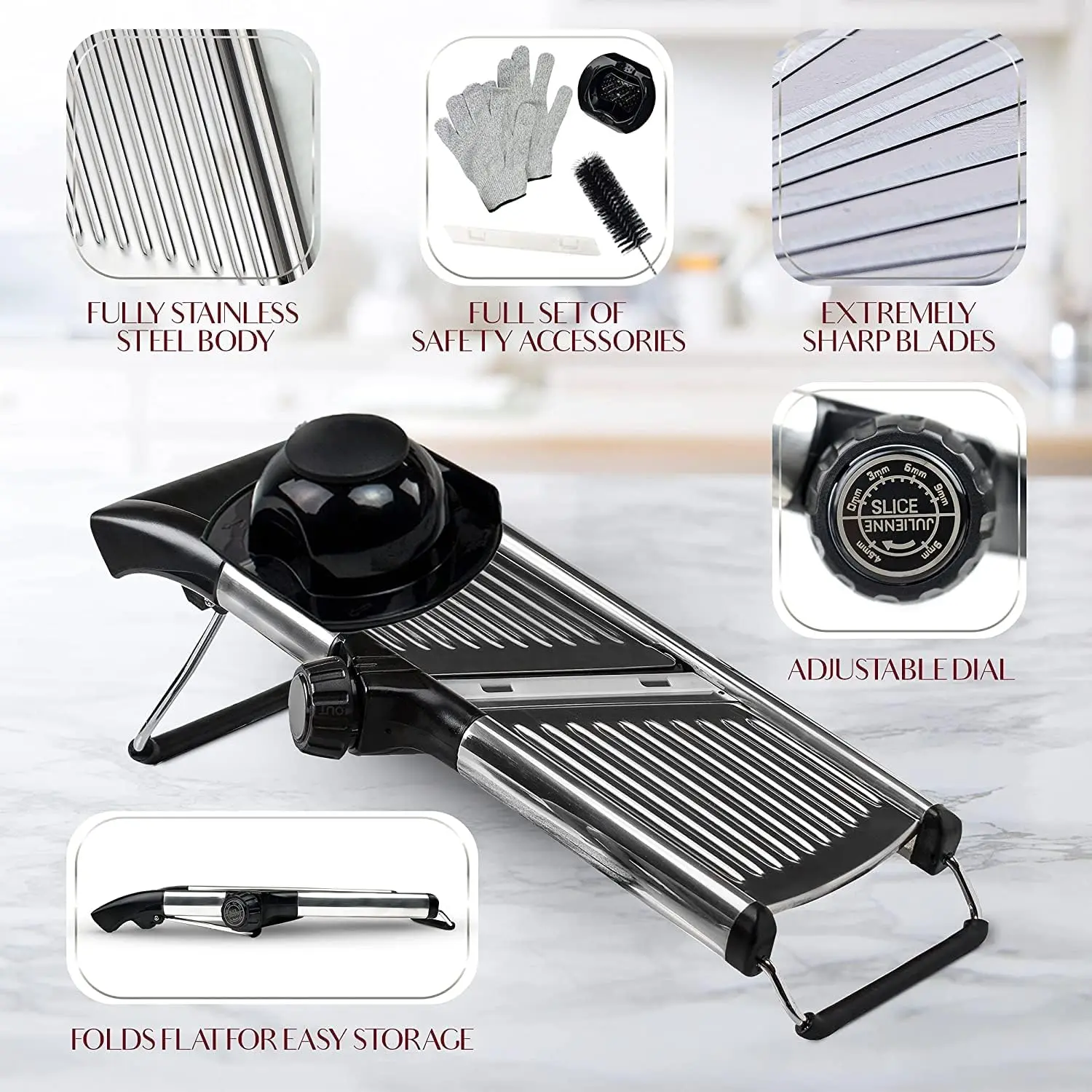 Adjustable Mandoline Slicer Stainless Steel Blades Gloves