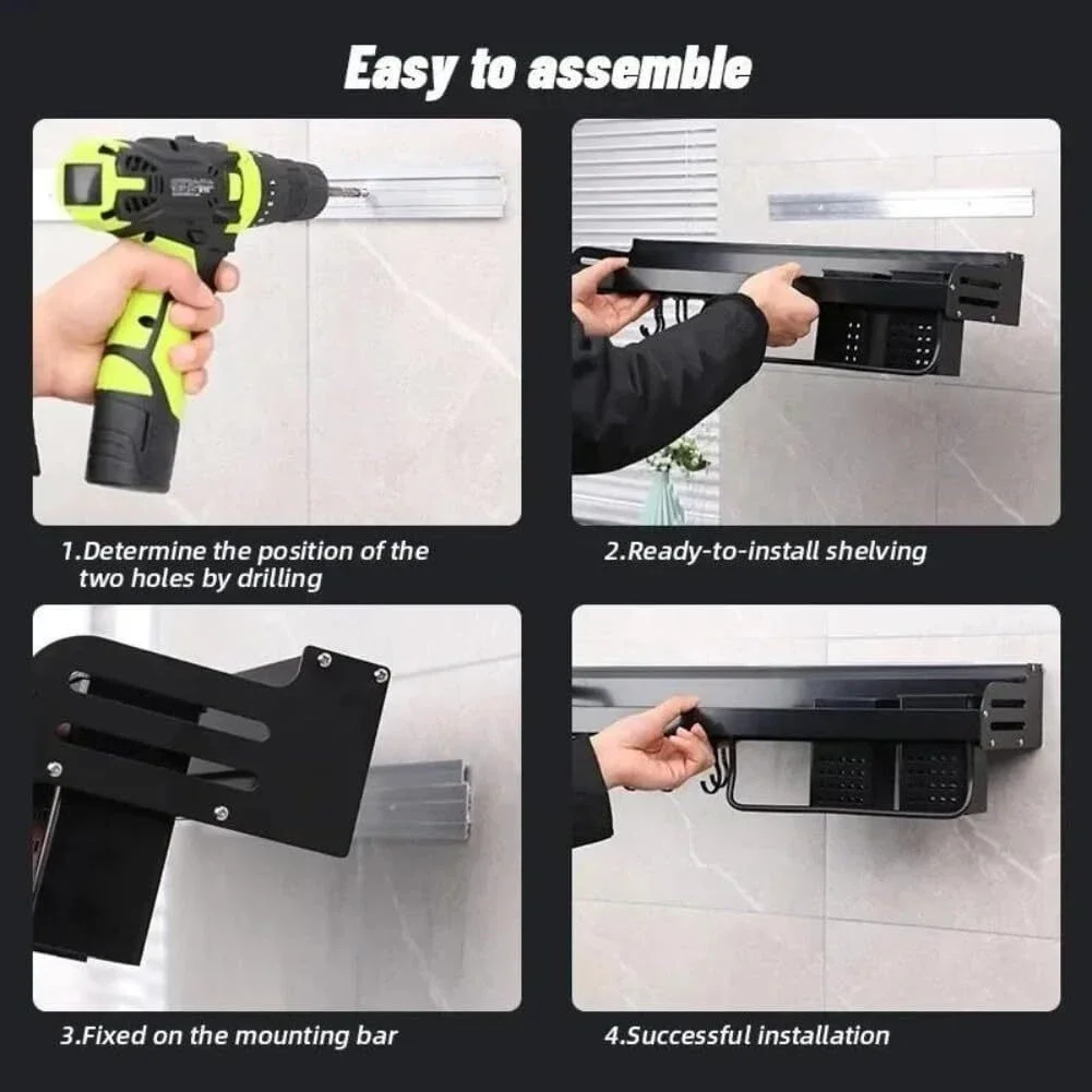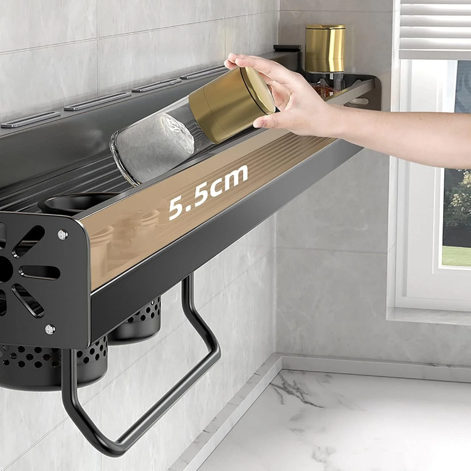 Black Wall Mounted No-Punch Large Capacity Storage Multifunctional Kitchen Spice Storage Rack No Punching Required Brackets