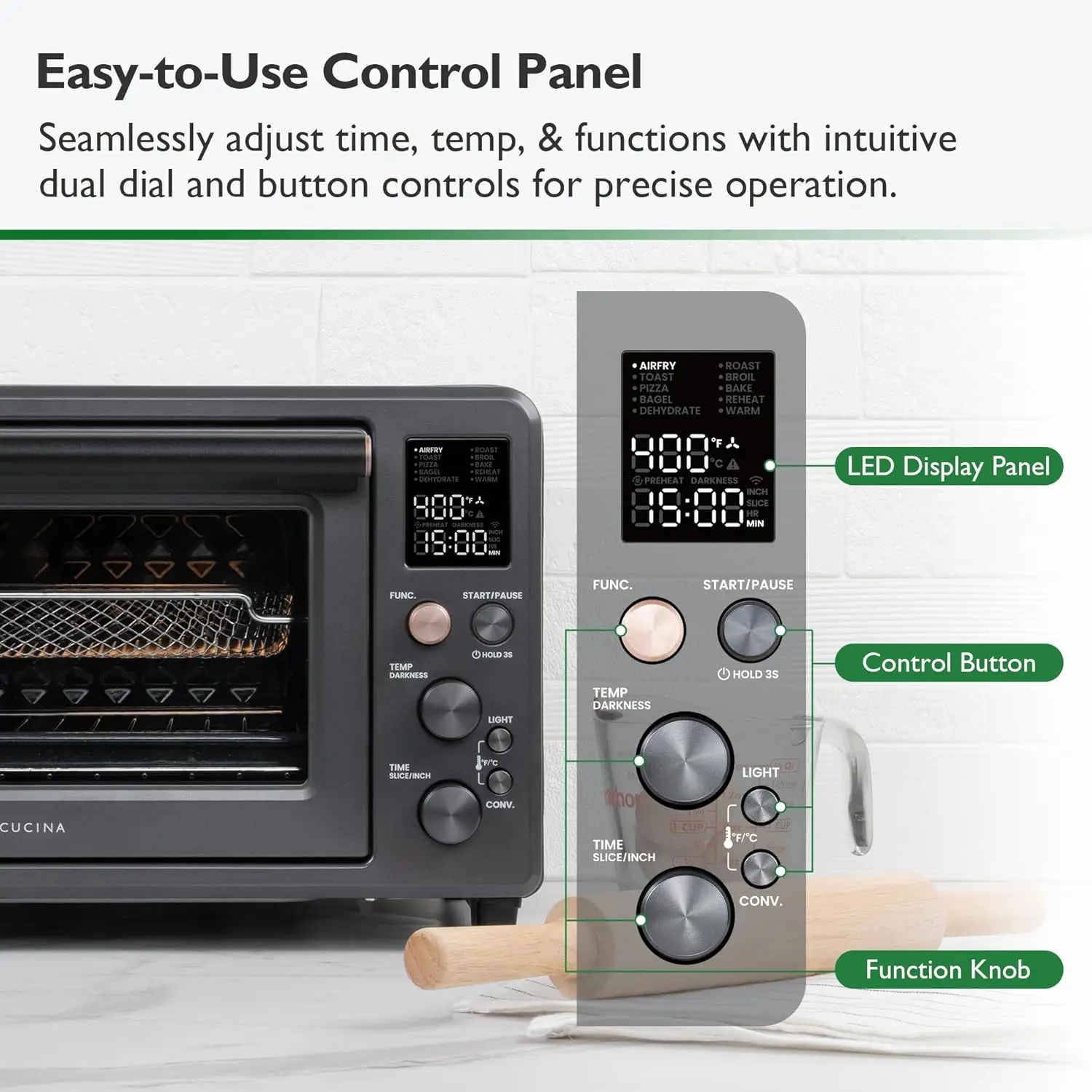 - Fast, Safe, and Easy to Use: The VAL CUCINA air fryer toaster oven combo operates at a quick and safe 1650W, complete with an intuitive control panel that makes your cooking journey effortless and enjoyable.