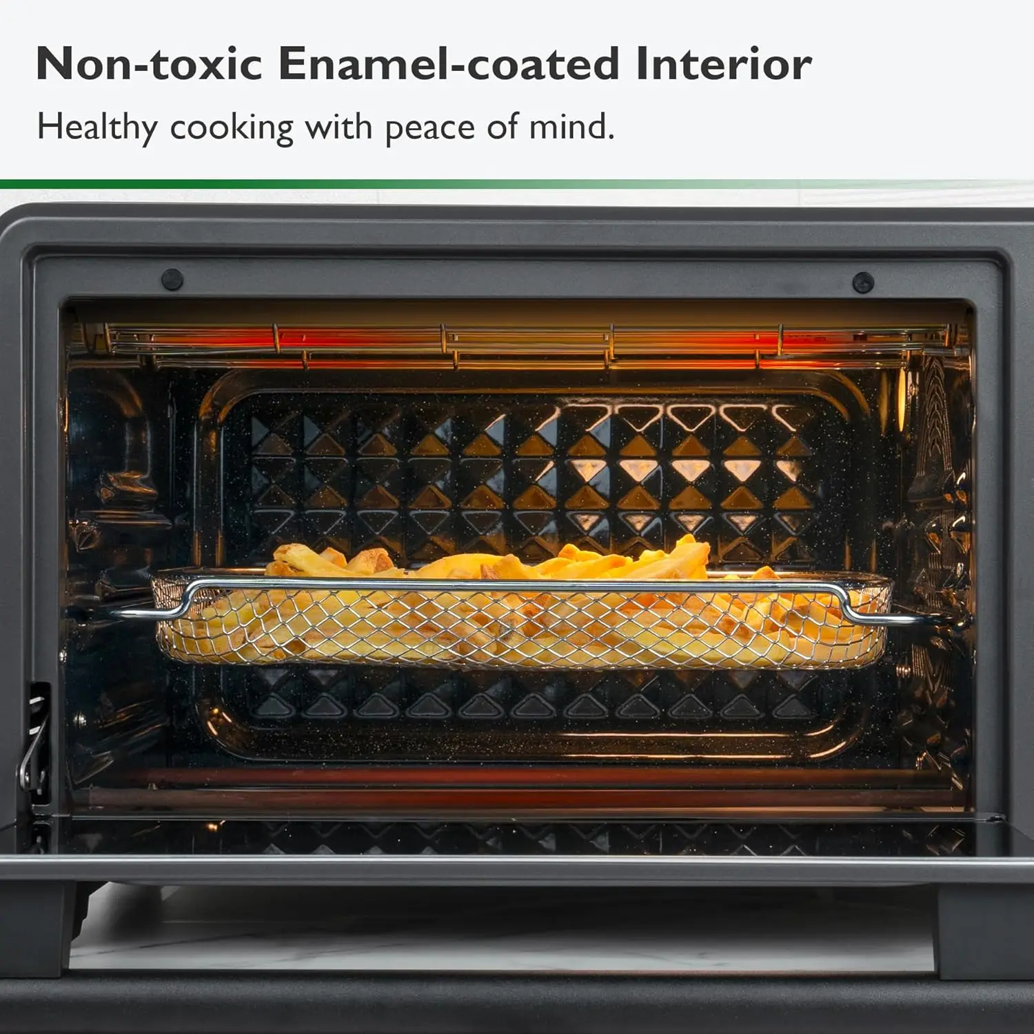 - Safe and Non-Toxic Enamel Coating Interior Wall: VAL CUCINA's air fryer oven's interior features a heavy duty enamel coating cavity, providing you with a healthier and safer cooking experience. (Only three side walls of the cavity are coated with enamel — the crumb tray and the ceiling are not )