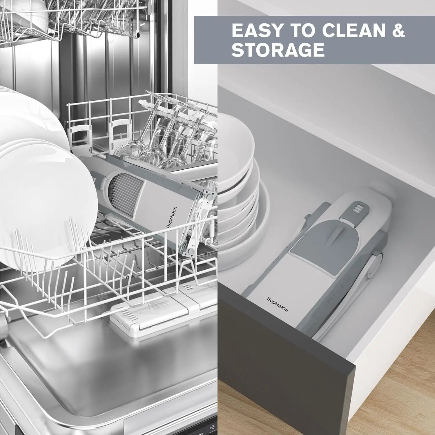 - EASY TO CLEAN: Our mandoline food slicer is designed Foldable and compact design, takes up little cabinet space,Rinse under the tap or put directly into the dishwasher, this vegetable slicer is great tool for kitchen with exquisite packaging is perfect new home gift.