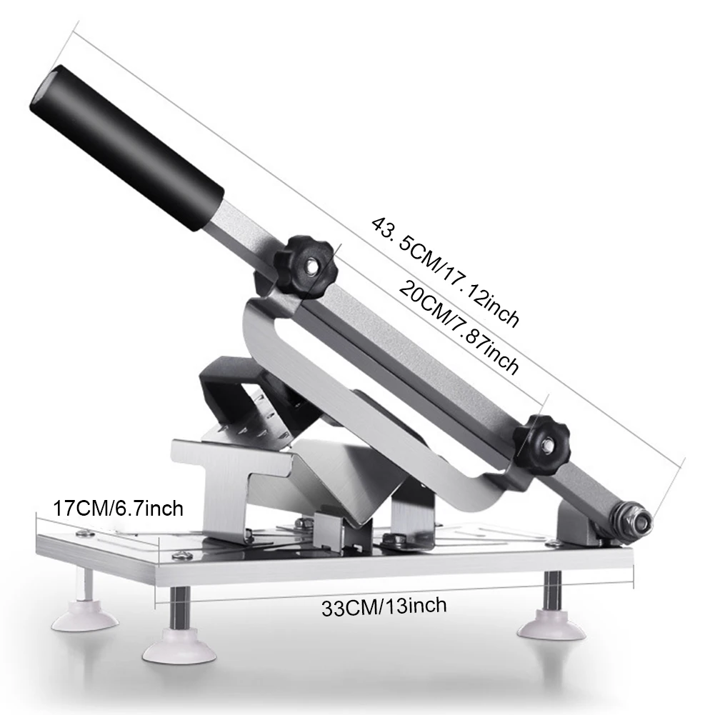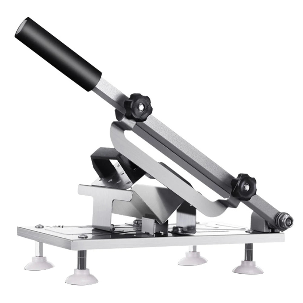 4. Simple Operation: The Meat Fruit Vegetable Slicer is designed for ease of use. Secure the machine on a table with its suction cups, hold the meat with your left hand, and slice forcefully with your right hand using the handle. For best results when slicing frozen meat, we recommend using gloves or a towel to ensure neat cuts.