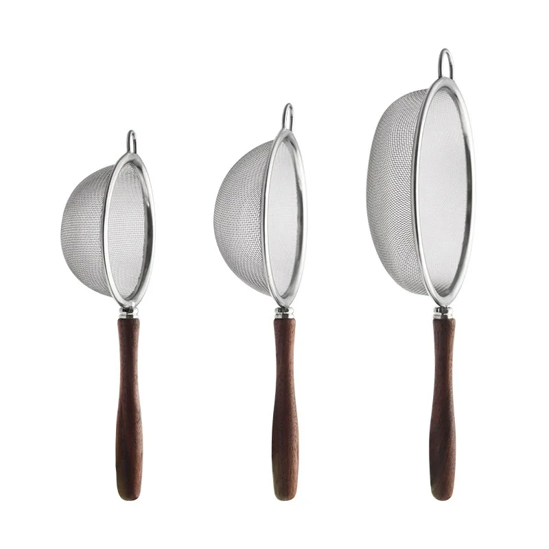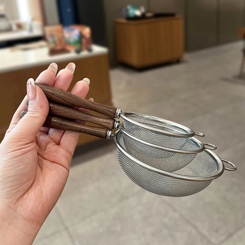 Wooden Handle Stainless Steel Small Colander Fine Mesh Oil Strainer Multi-function Filter Mesh Flour Sifter Kitchen Baking Tools